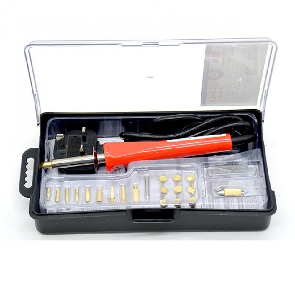 آلة حرق على الخشب مع رؤوس وقاعدة وعلبة للأدوات من اس بي سي