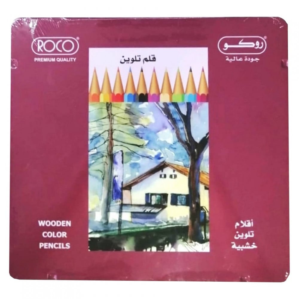 ألوان خشبية بعلبة مسطحة معدنية من روكوألوان غنية ورائعةسهلة البري ومقاومة للكسرقلم سلس وناعمتتوفر بعدة أحجام:12 لون24 لون