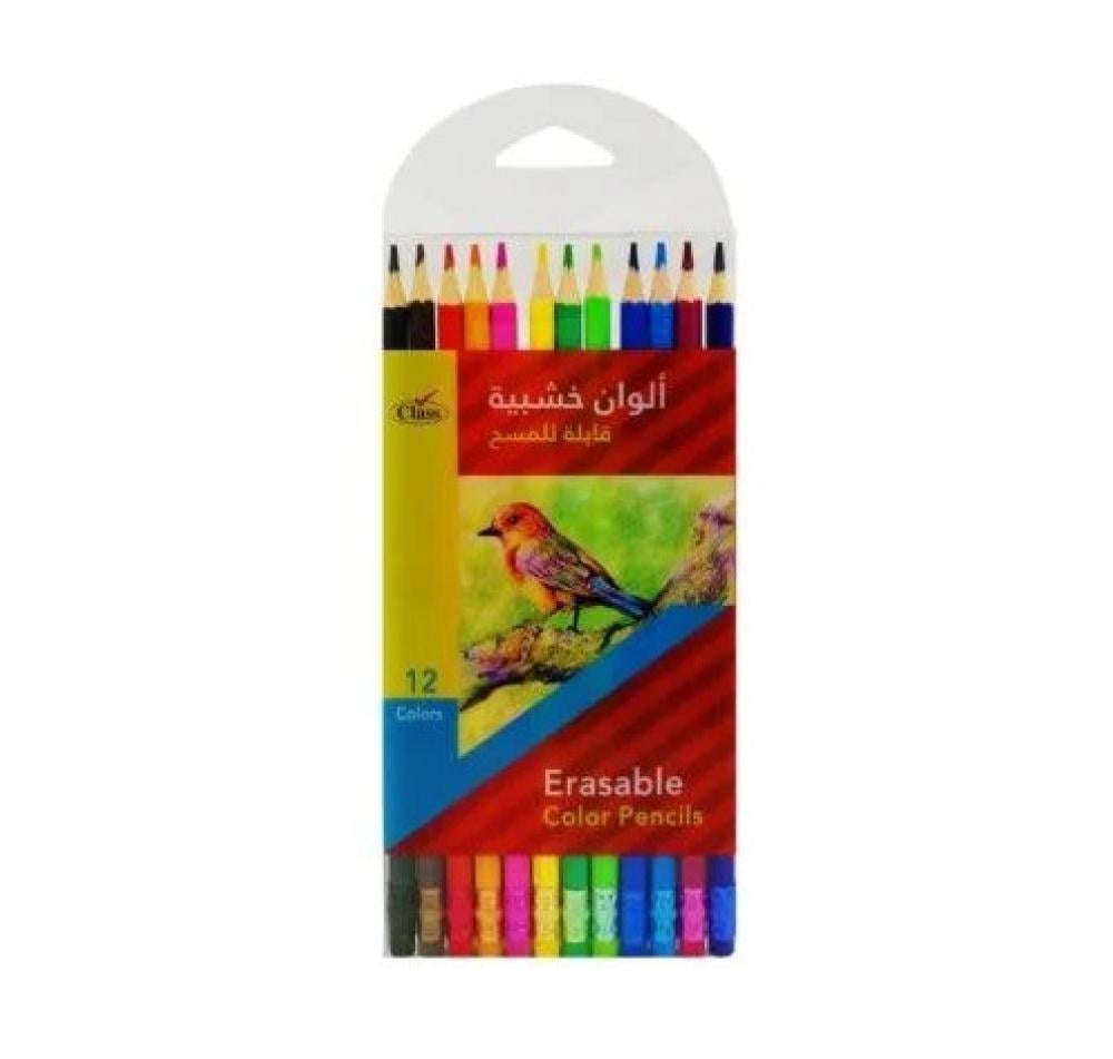 ألوان خشبية قابلة للمسح | 12 لونالوان خشبية عالية الجودة من كلاسومناسبة للمتمرسين والمبتدئينمناسب للرسم والتظليل والتلوينمصنعة من مواد عالية الجودة وغير ضارة