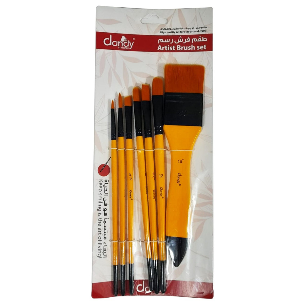 طقم فرش رسم من داندييتضمن الطقم 7 فرشجودة عاليةمناسبة للألوان المائية والاكريليك والزيتيةطقم فرش متعدد الرؤوس يستطيع تغطية مساحات كبيرة وبأدق التفاصيل.