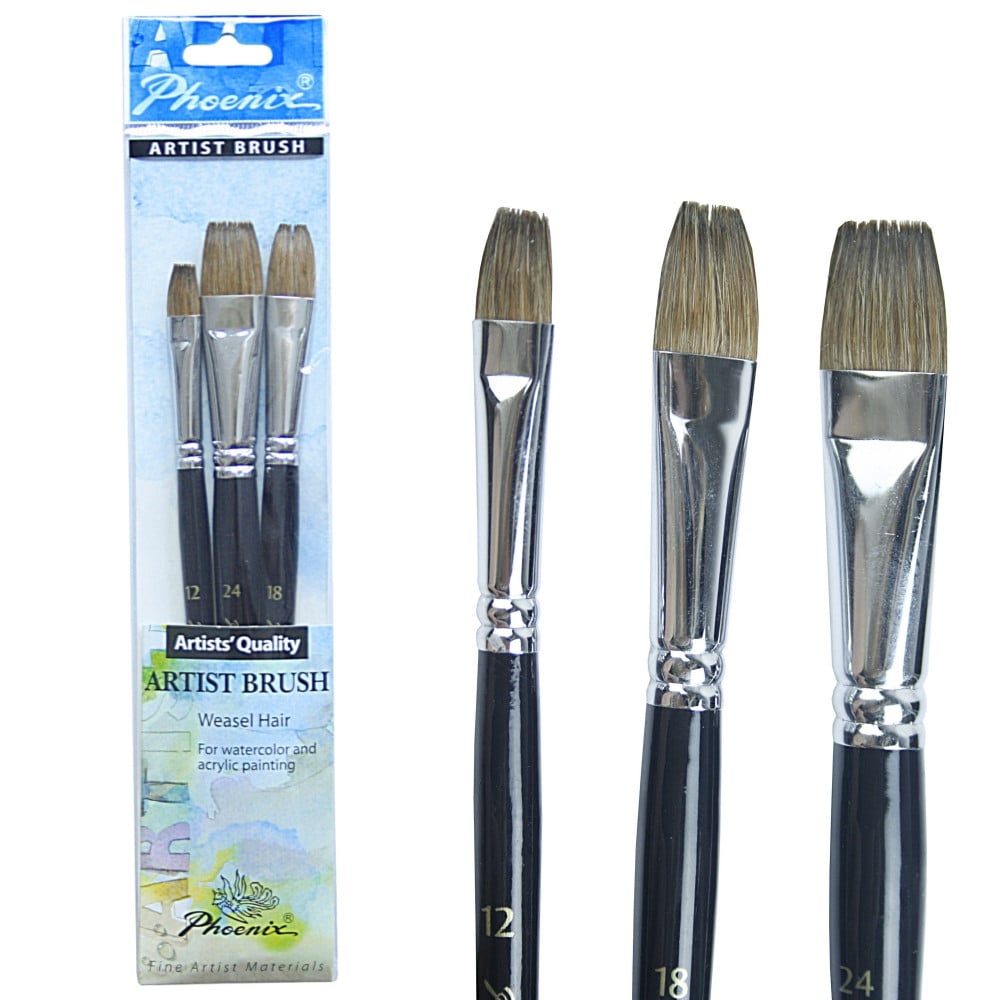 طقم فرش لفنانين من فينيكس3 فرش براون نايلون3 فرش برايت (مستقيمة) رقم 12 ، 18 ، 24منسبة للألوان: المائية - الاكريليك