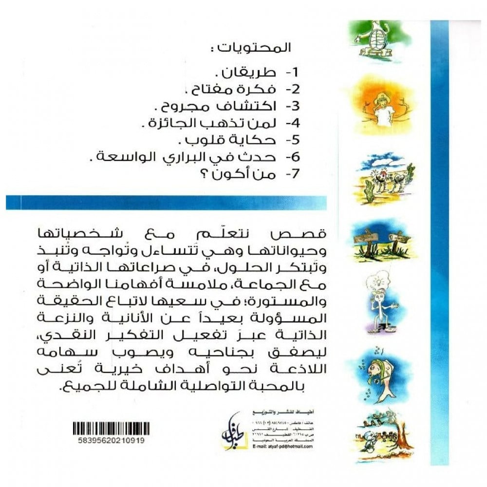 قصـص نتعلم مع شخصياتها وحيواناتهـا وهـي تتساءل وثواجـه وتنبـذ وتبتكـر الحـلـول، فـي صراعاتهـا الـذاتيـة أو مع الجماعة، ملامسة أفهامنا الواضحة والمسـتورة؛ فـي سعيها لاتبـاع الحقيقـة المسـؤولة بعيـداً عـن الأنانية والنزعـة الذاتيـة عبر تفعيل التفكيـر النقـدي، ليصفق بجناحيه ويصـوب سهامه اللاذعـة نحـو أهـداف خيرية تعنى بالمحبة التواصلية الشاملة للجميع.