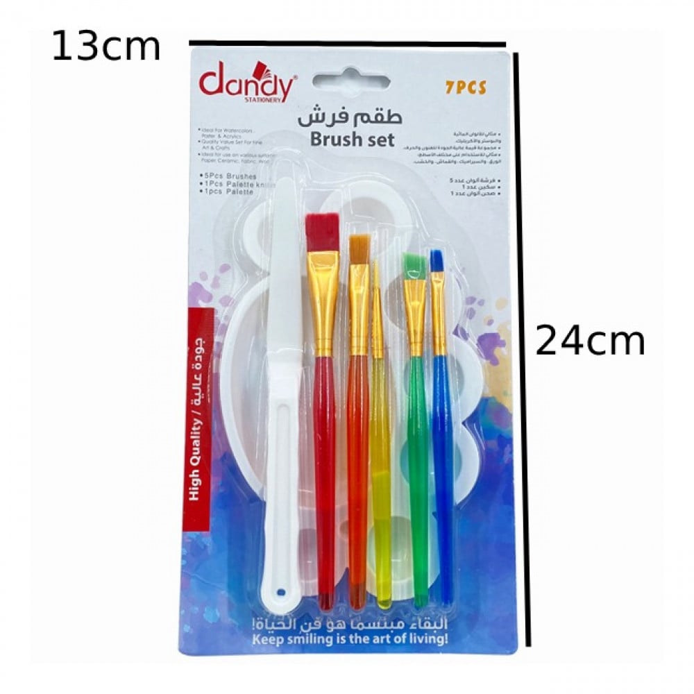 طقم أدوات تلوين من داندييتضمن الطقم: 5 فرش ملونة + سكين 1 + صحن ألوان (بالت)مثالي للألوان المائية والبوستر والاكريليكمثالي للاستخدام على مختلف الأسطح مثل الورق والسيراميك والقماش والخشب.